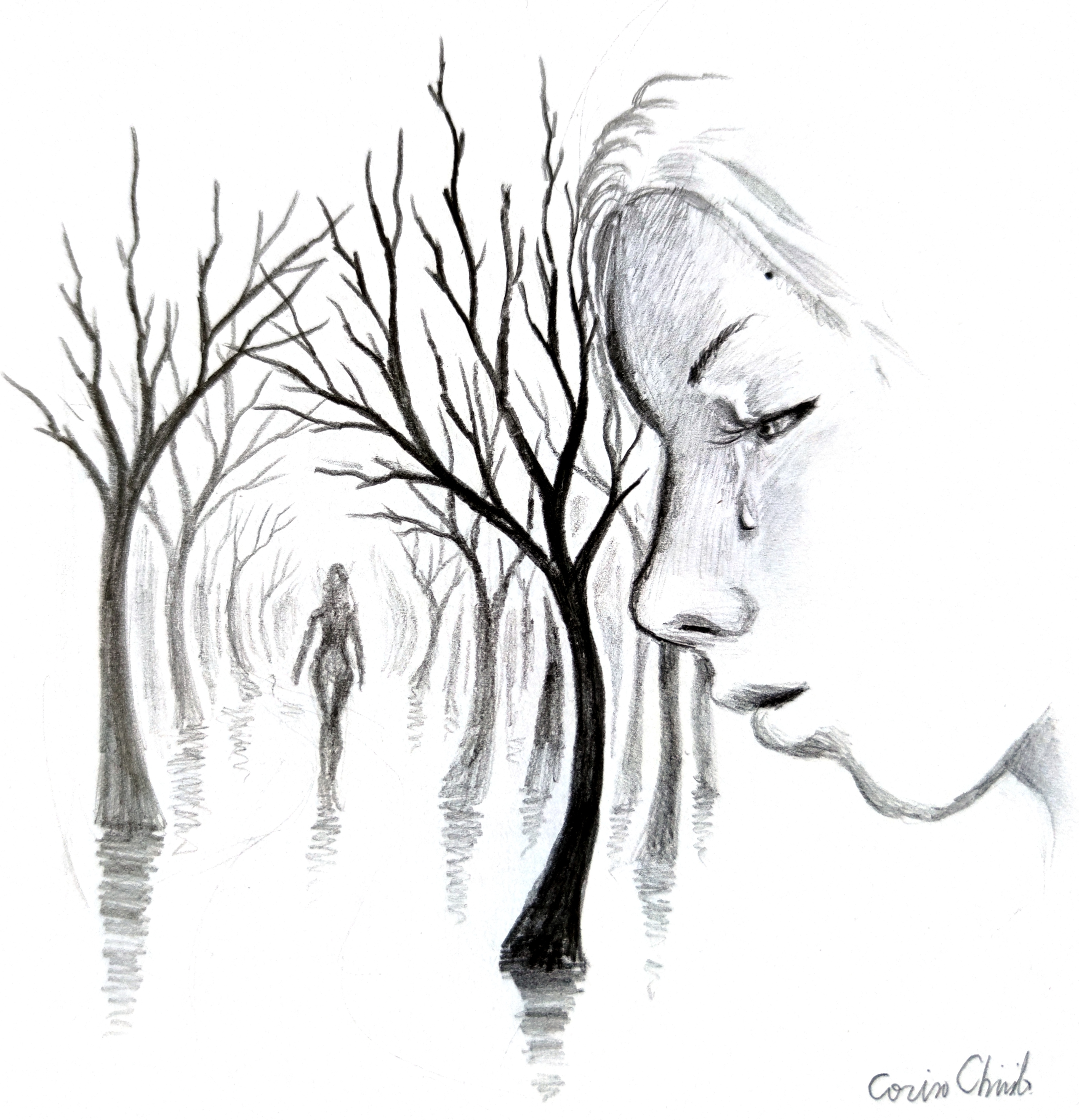 Lacrimi pentru iubirea care a plecat, un desen in creion care exprimă tristețea fara margini pe care o simt acum