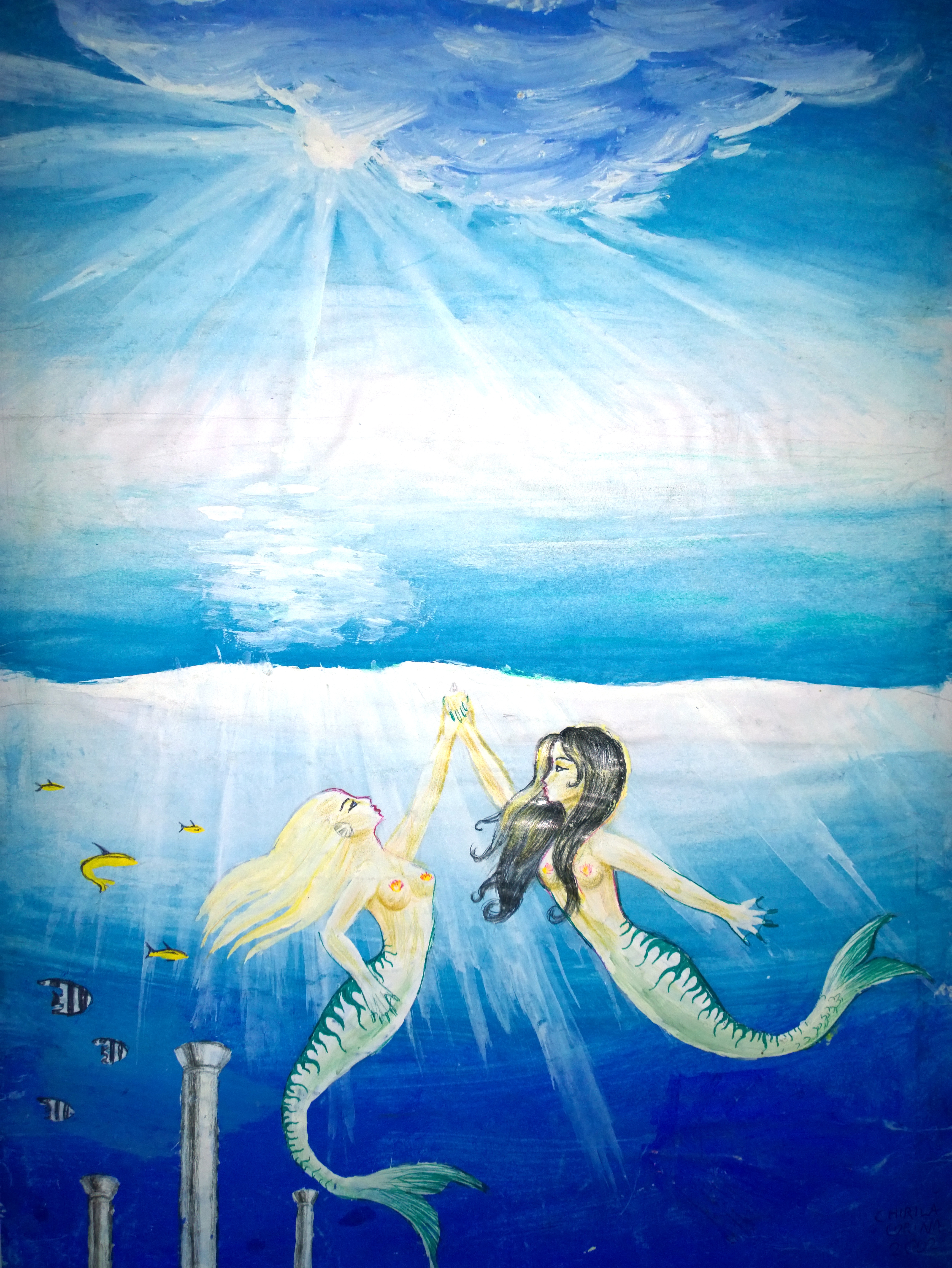 Delfini indragostiti, desen facut cu pixul