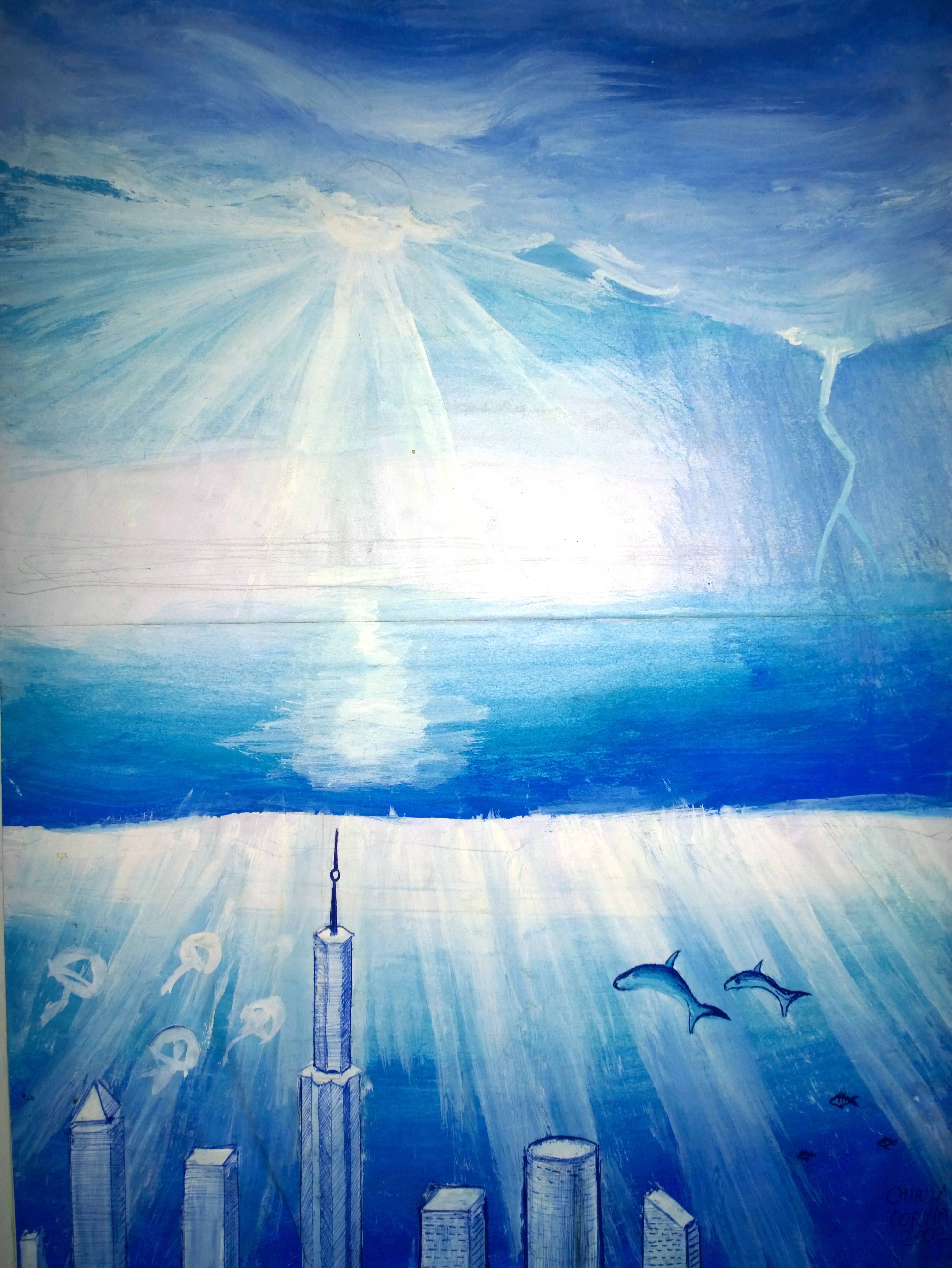 Apa, sursa vietii, desen in pix