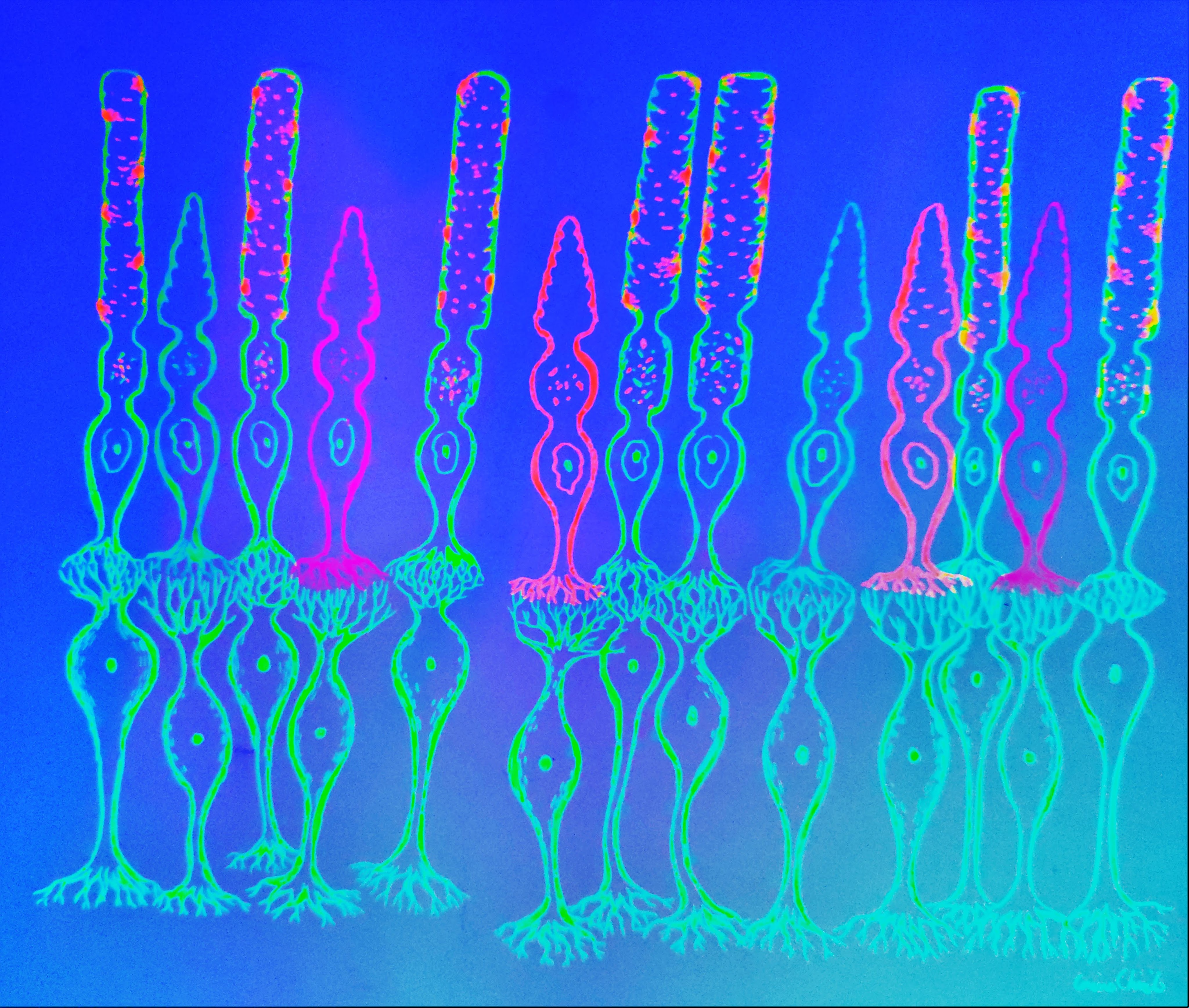 Celule cu con si celule cu bastonas, desen fluorescent in lumina UV