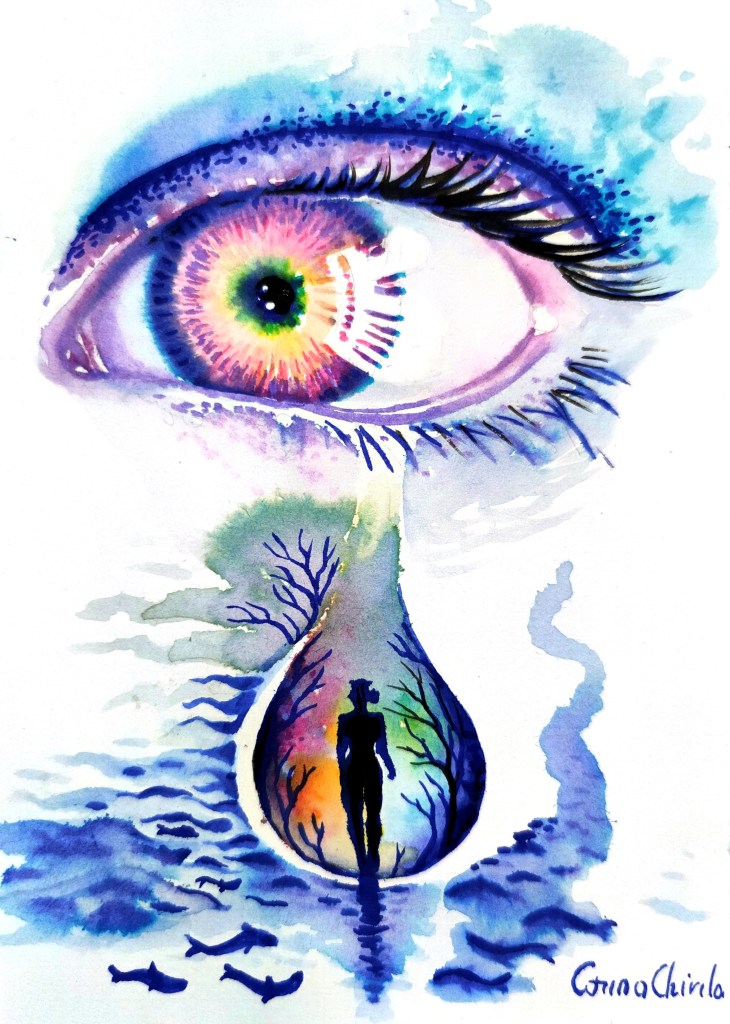 Am desenat si am pictat diverse tipuri de ochi pana acum iar multe dintre aceste lucrari sunt deja vandute, cum e si cazul tabloului de mai sus care acum troneaza in cabinetul unui medic oftalmolog