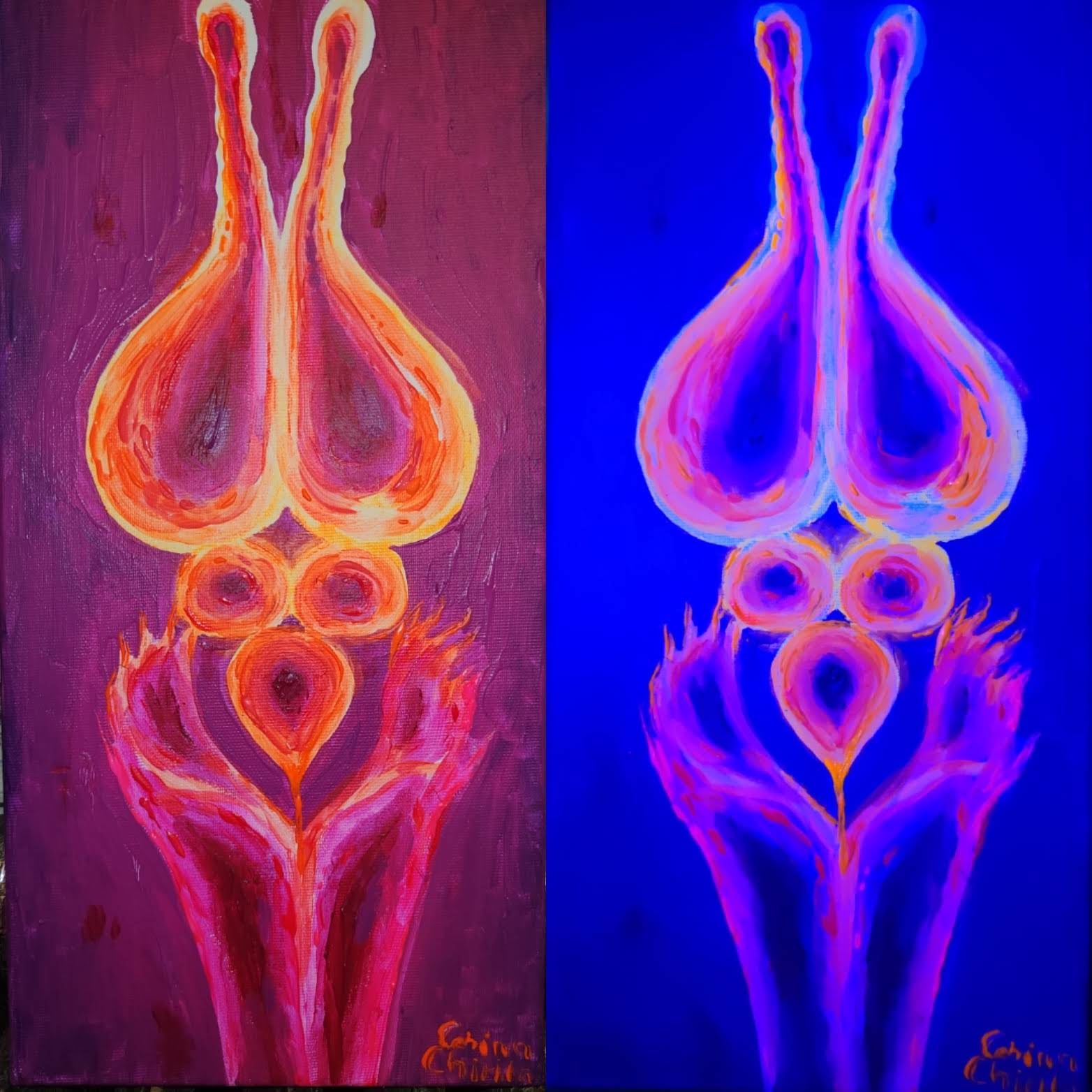 „Celulele cartilajului de sepie”, „Neuron Purkinje”, „Diviziunea celulara”, „Neurula” „Singularitate”, „Laniakea” si „Gaura neagra din centrul galaxiei noastre” sunt doar cateva dintre lurarile mele cu tematica stiintifica, din astronomie sau biologie. Am terminat facultatea de biologie si as fi putut fi profa plictisitoare de bio de care fiecare elev arde de nerabdare sa scape ca sa rupa usa si sa ajunga mai repede la minge dar am fugit mereu de invatamant ca dracu de tamaie. Prefer sa atrag tanara generatie catre stiinta intr-un mod mult mai placut, prin arta mea postata pe internet pentru ca stiu ca scoala e ultimul loc unde copilul se duce de placere si ca sa descopere pasiuni si interese noi, iar proful sau profa e ultimul om pe care acesta l-ar lua ca model. Se face stiinta in scoala dar elevul ajunge sa fuga de stiinta tocmai pentru ca ii este bagata pe gat la scoala.