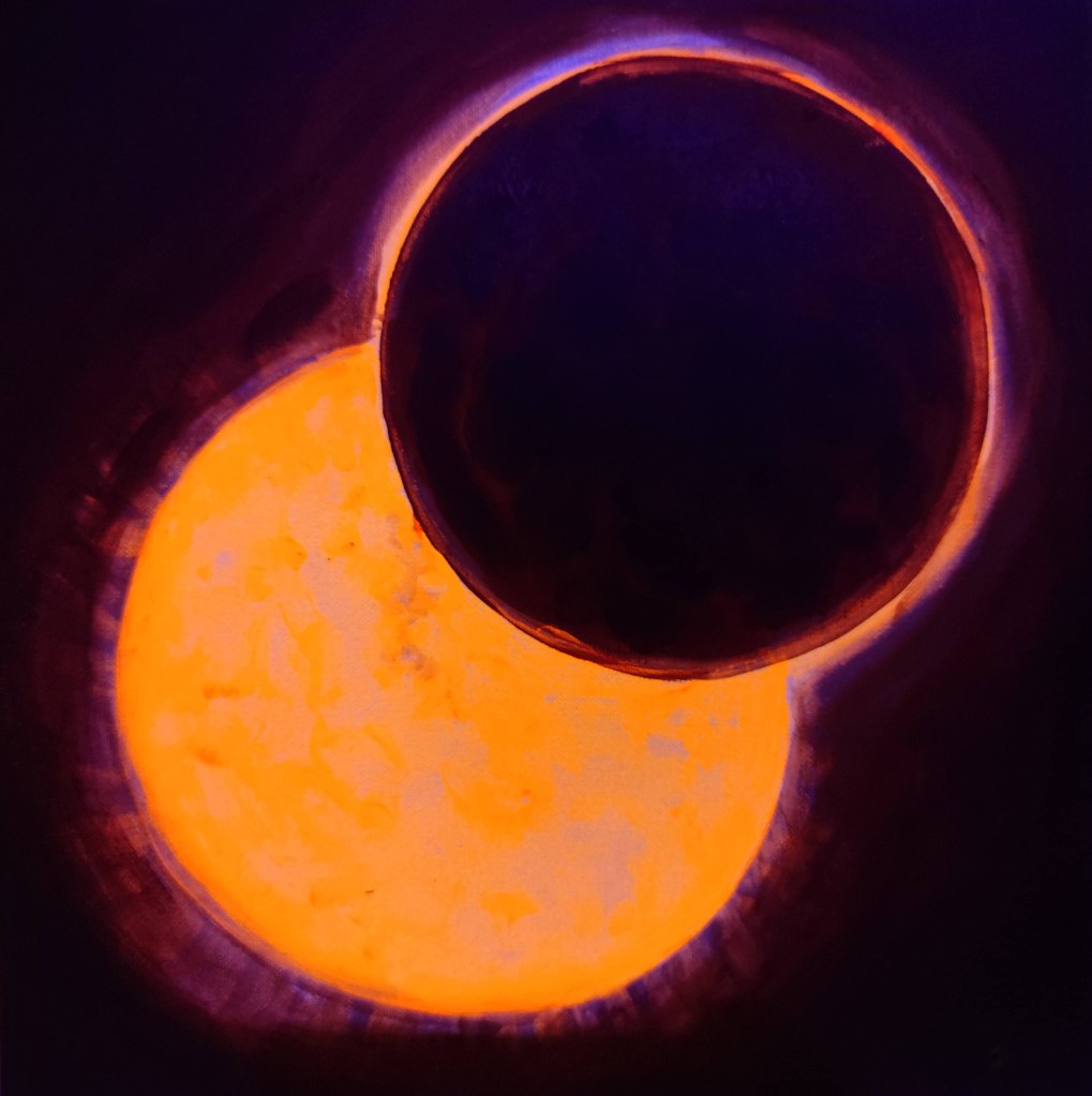Eclipsa totala si eclipsa partiala de soare Desene si picturi de Corina Chirilaeclipsa de soare, pictura, Pictura fluorescenta, Picturi, Picturi cosmice, Picturi fluorescenteLasă un comentariu Fiind inspirata de eclipsa partiala de zilele trecute am facut inca doua picturi fluoreacente, o eclipsa totala si o eclipsa partiala de soare, picturile pot fi vazute la Market bazar pe str Franceza nr 9 Partajează asta: Dă clic pentru a partaja pe X(Se deschide într-o fereastră nouă) X Dă clic pentru a partaja pe Facebook(Se deschide într-o fereastră nouă) Facebook Dă clic pentru a partaja pe Pinterest(Se deschide într-o fereastră nouă) Pinterest Apreciază Încarc... Similare