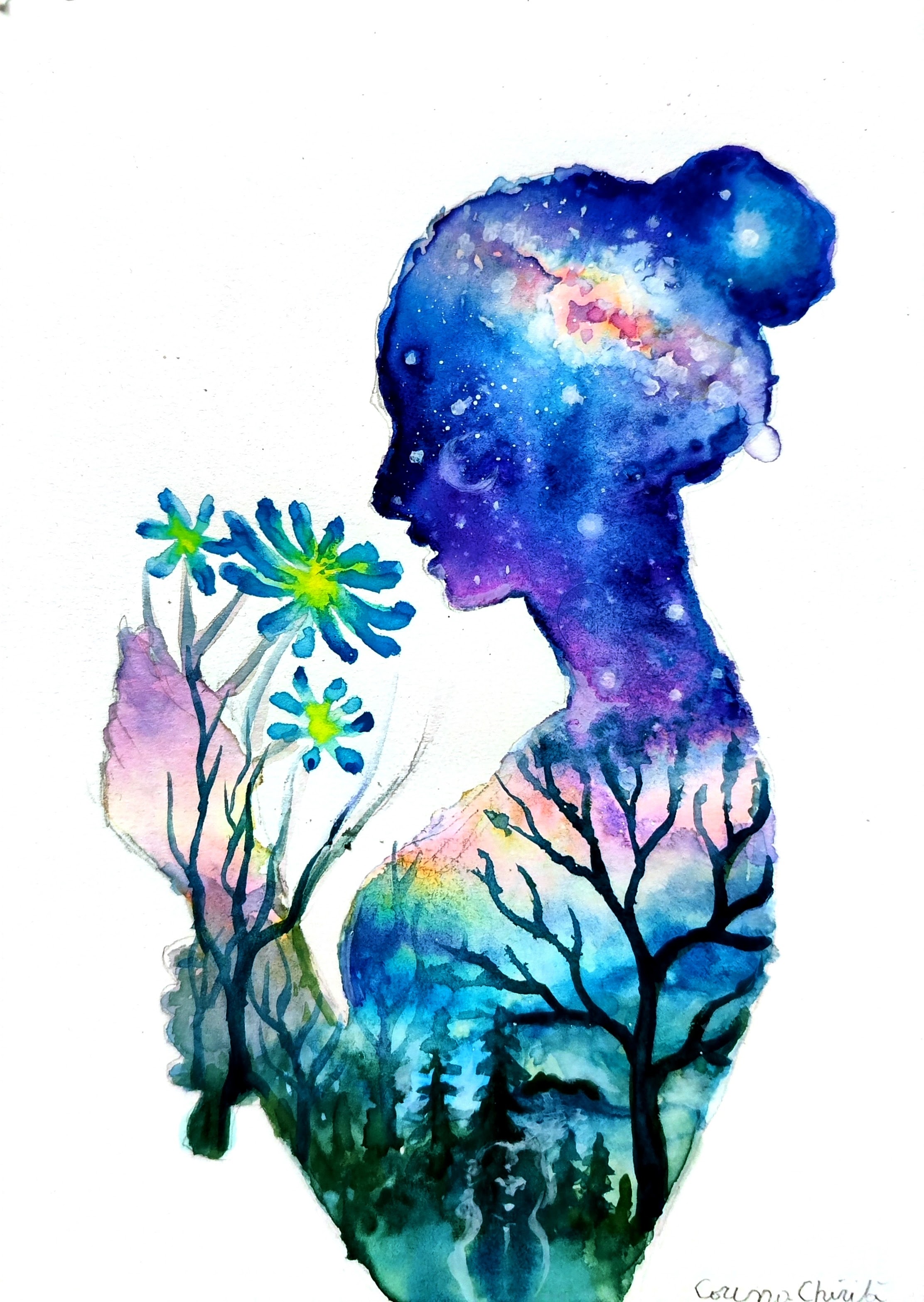 Floare albastra, acuarela