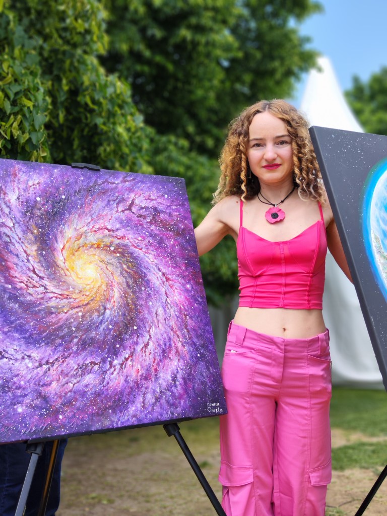Ieri am participar la AstroFest in Parcul Crangasi cu doua dintre lucrarile mele, catastrofa de pe planeta Marte si una dintre galaxiile mele. Am vrut sa fiu prezenta cu mai multe creatii dar vremea m-a impiedicat sa aduc mai mult de doua sevalete pe care si asami-a fost greu sa le tin ca sa nu fie doborate de vant