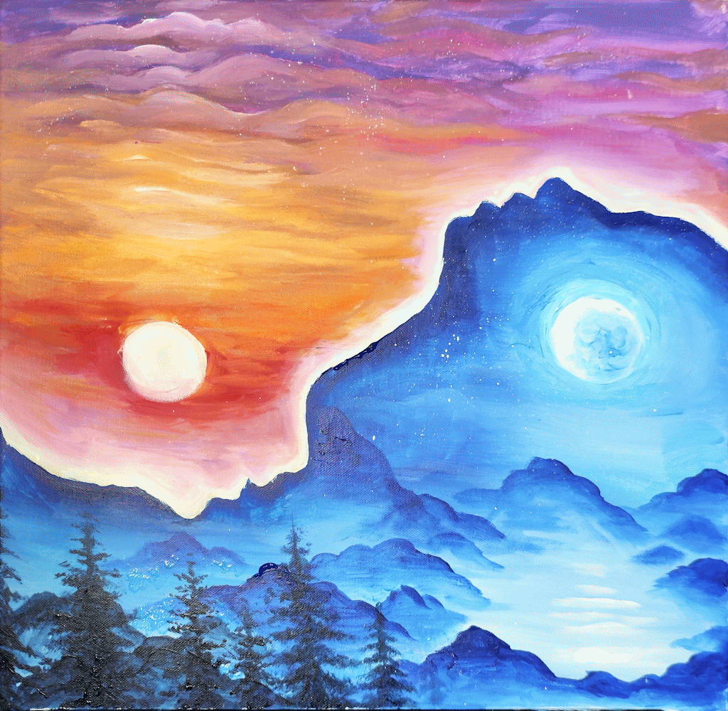 Pornind de la aceste legende am realizat o pictura despre cele doua principii complementare