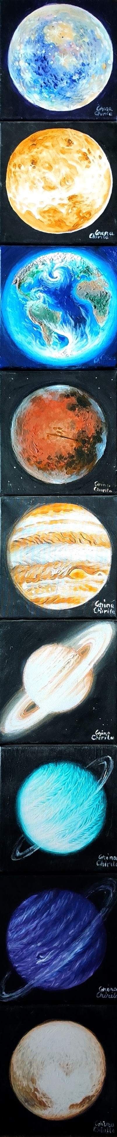 Sistemul solar Desene si picturi de Corina ChirilaPlanete, Sistemul solar, spatiul cosmicplanete, Sistemul solarLasă un comentariu Aceste lucrari avand ca tema planetele sistemului solar fac parte din expozitia de pictura Calatorie in univers si vor fi expuse la Cronic Love Productions Timisoara incepand cu 21 septembrie Partajează asta: Dă clic pentru a partaja pe X(Se deschide într-o fereastră nouă) X Dă clic pentru a partaja pe Facebook(Se deschide într-o fereastră nouă) Facebook Dă clic pentru a partaja pe Pinterest(Se deschide într-o fereastră nouă) Pinterest Apreciază Încarc... Similare