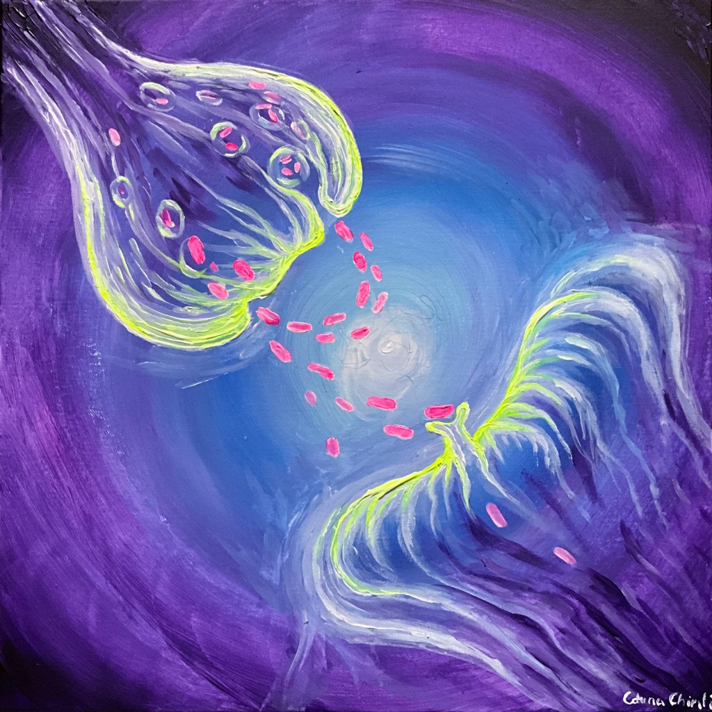 Am realizat si eu o lucrare despre procesul de reabsorbtie a serotoninei. Pictura in acrilice pe panza va fi expusa luna viitoare la Hotel Caro. Voi reveni cu detalii despre expozitie.