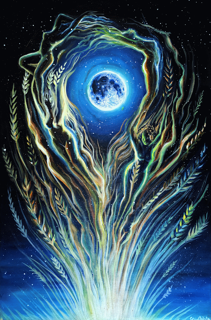 Cu gandul la povestile romanesti ca isi au origine in mitologia dacica si in credintele vechilor geto-daci, am mai realizat o pictura despre niste zeitati agrare dacice care au ramas si in ziua de azi in folclor si in povestile romanesti sub forma unor zane bune sau sanziene