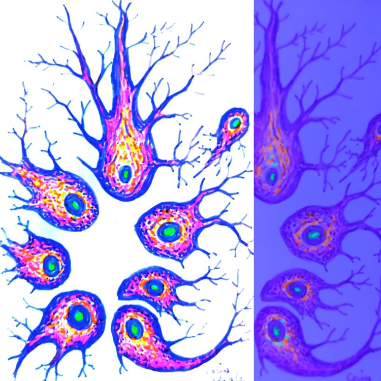 Pentru multi acesta este un arbore al vietii dar ceea ce am pictat sambata la Market Bazar, pe Str Franceza nr 9, la fostul teatru Casandra, este un neuron piramidal cu spini neurali Pictura fluorescenta a atras nenumarate priviri si poate fi vazuta la etaj, in zona unde picturile mele fluorescente stralucesc in lumina UV