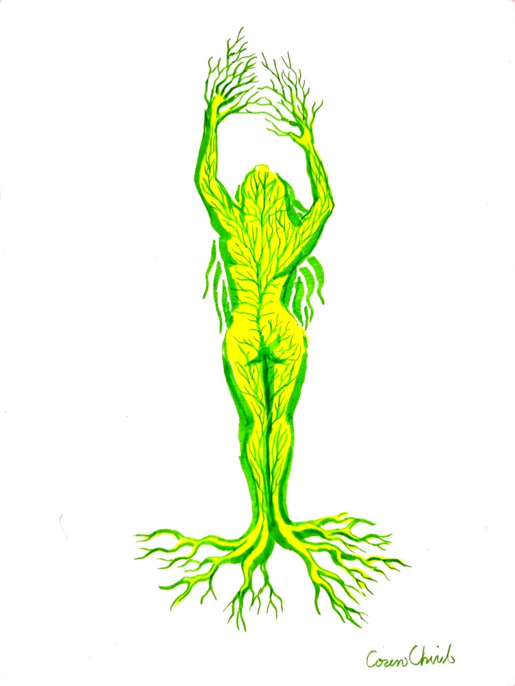 Spiritul verde al naturii sau mama natura, desen facut cu markere colorate