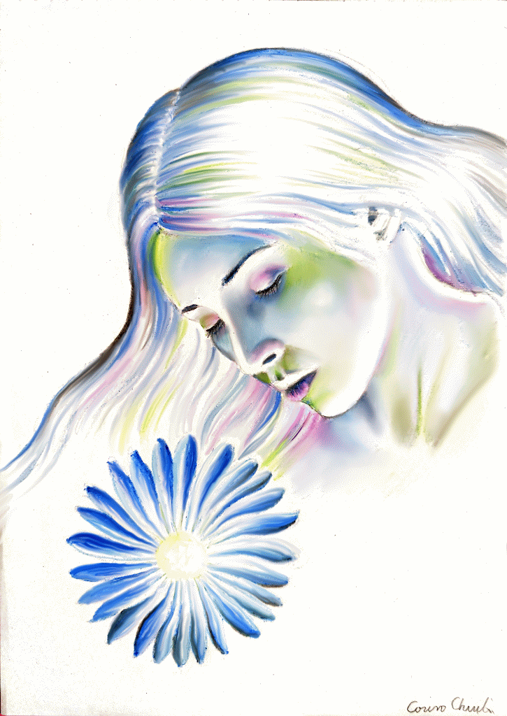 Floare albastra sau muza pierduta a lui Mihai Eminescu, desen si pictura