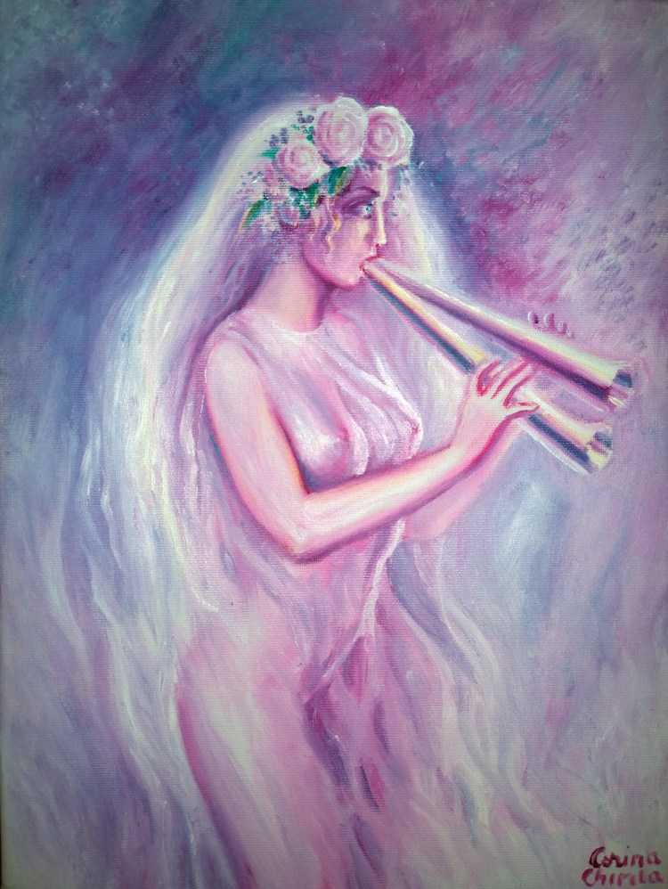 Citeşte mai mult„Cred ca nici o alta fata care va privi soarele altor timpuri nu va avea un asemenea talent cum are aceasta fata” Acestea au fost cuvintele scrise de Sappho acum 2600 si ceva de ani Aceste versuri dintr-o poezie pierdută m-au inspirat sa fac un tablou prin care am reprezentat silueta fetei, cu lira in […]