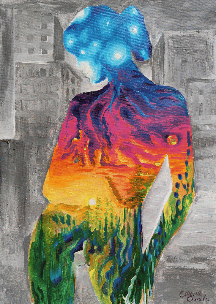 Aceasta este Mama Terra sau Geea, o personificare a planetei noastre, un tablou ce va fi expus la sala ronda a Ce4rcului Militar National incepand de luni, 29 aprilie