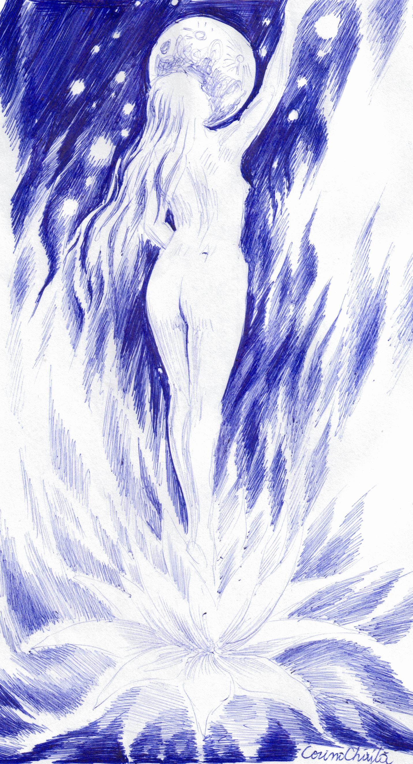 desen in pix femeie nud cu floare de lotus nude woman ball point 001