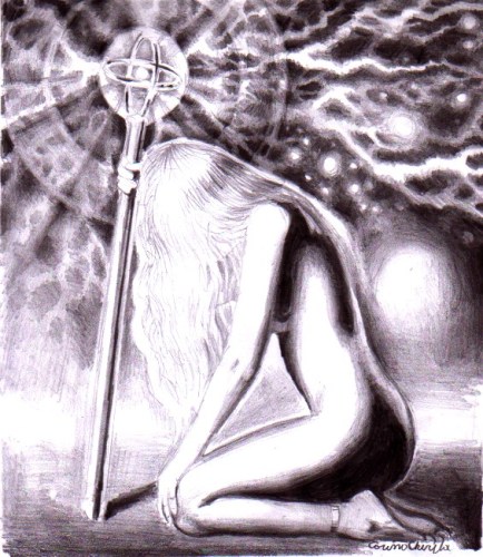 Fata cu sceptrul electric desen in creion