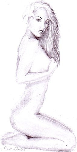 Fata cu floare de crin in par desen in creion