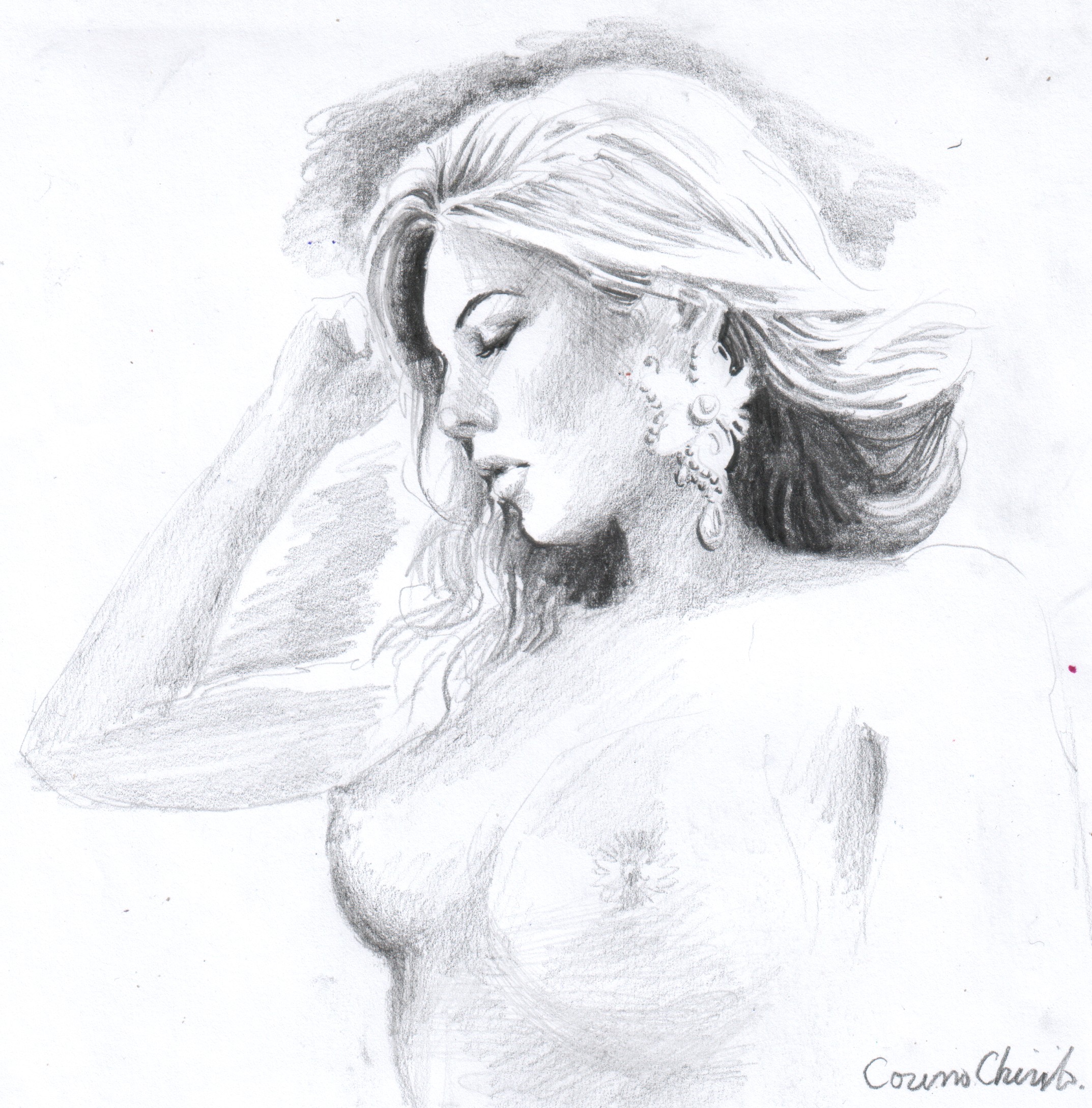 femeie eleganta cu cercel desen in creion – Ellegant woman with with earring pencil drawing Apreciază Încarc...