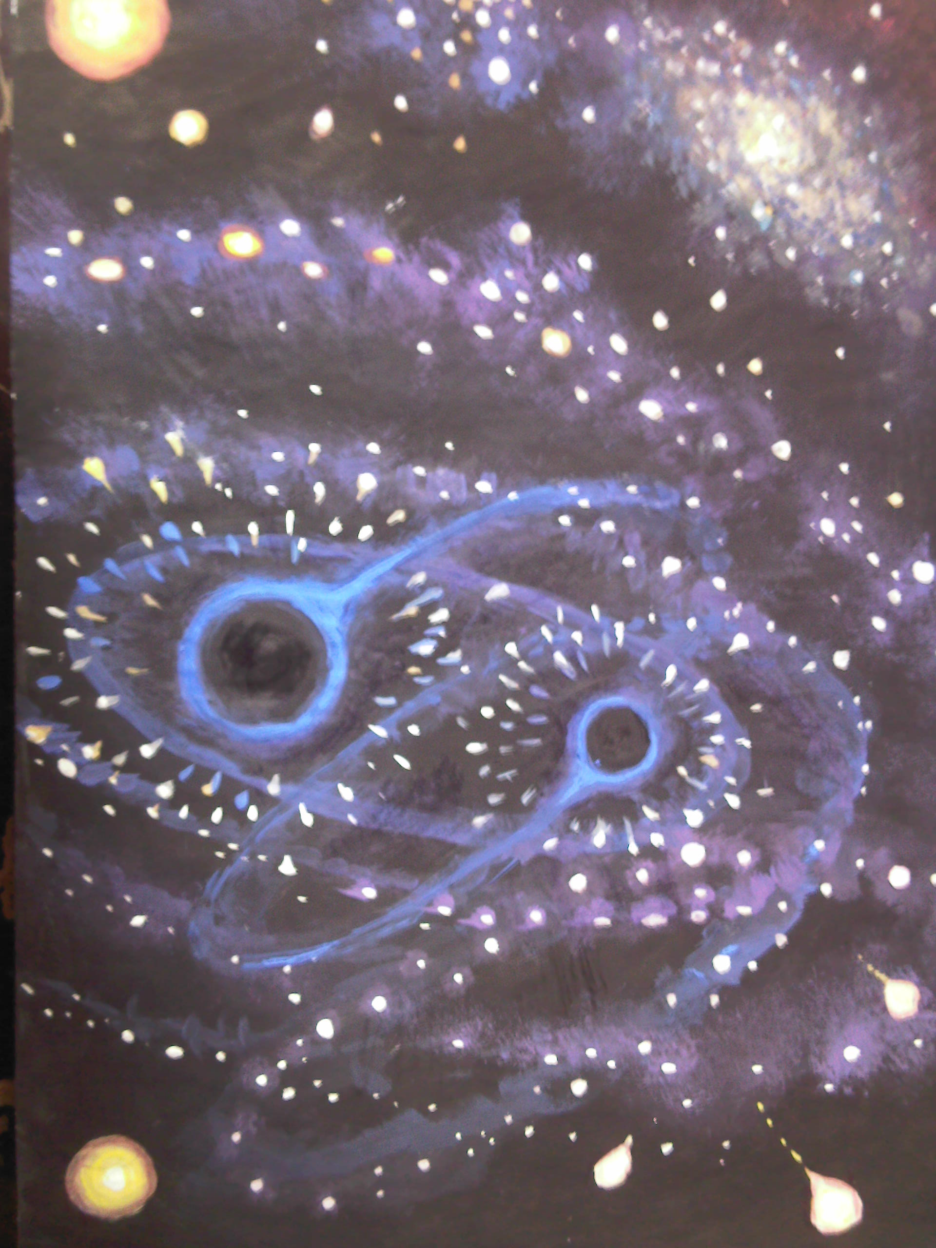 Gauri negre in tandem sistem binar pictura tempera – Black hole duo tempera painting Apreciază Încarc...