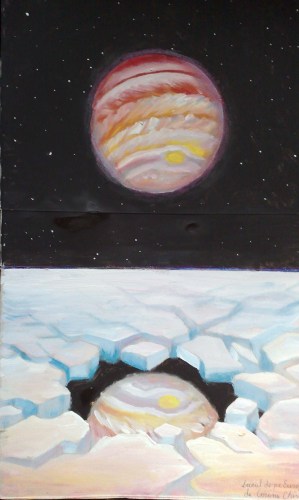 Jupiter reflectandu-se intr-un lac de pe Europa – Europa lake painting