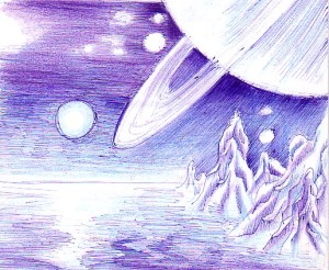 Peisaj de pe Titan desen in pix