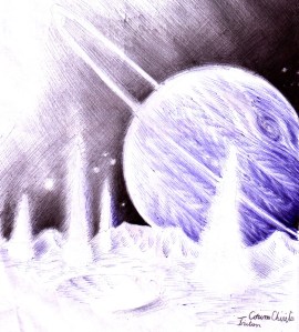 Peisaj de pe Triton satelitul planetei Neptun desen in pix – Neptunes seen fromTriton pen drawing Apreciază Încarc...