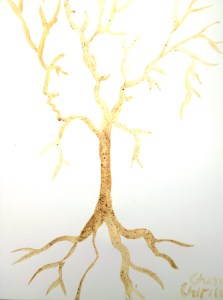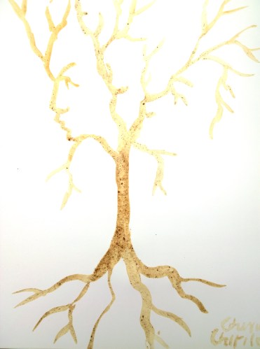Copac cu figuri ascunse pictat cu cafea