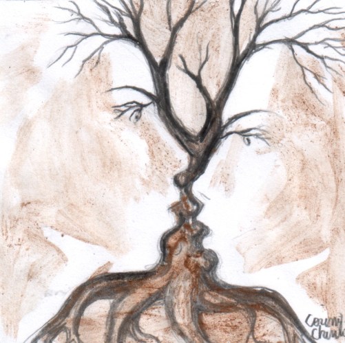 Copacul sarutului pictura facuta cu cafea – The tree of the kiss coffee painting