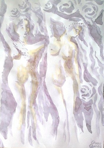 Dublu nud pictat cu vin si cu cafea – Nude women painted with wine and coffee