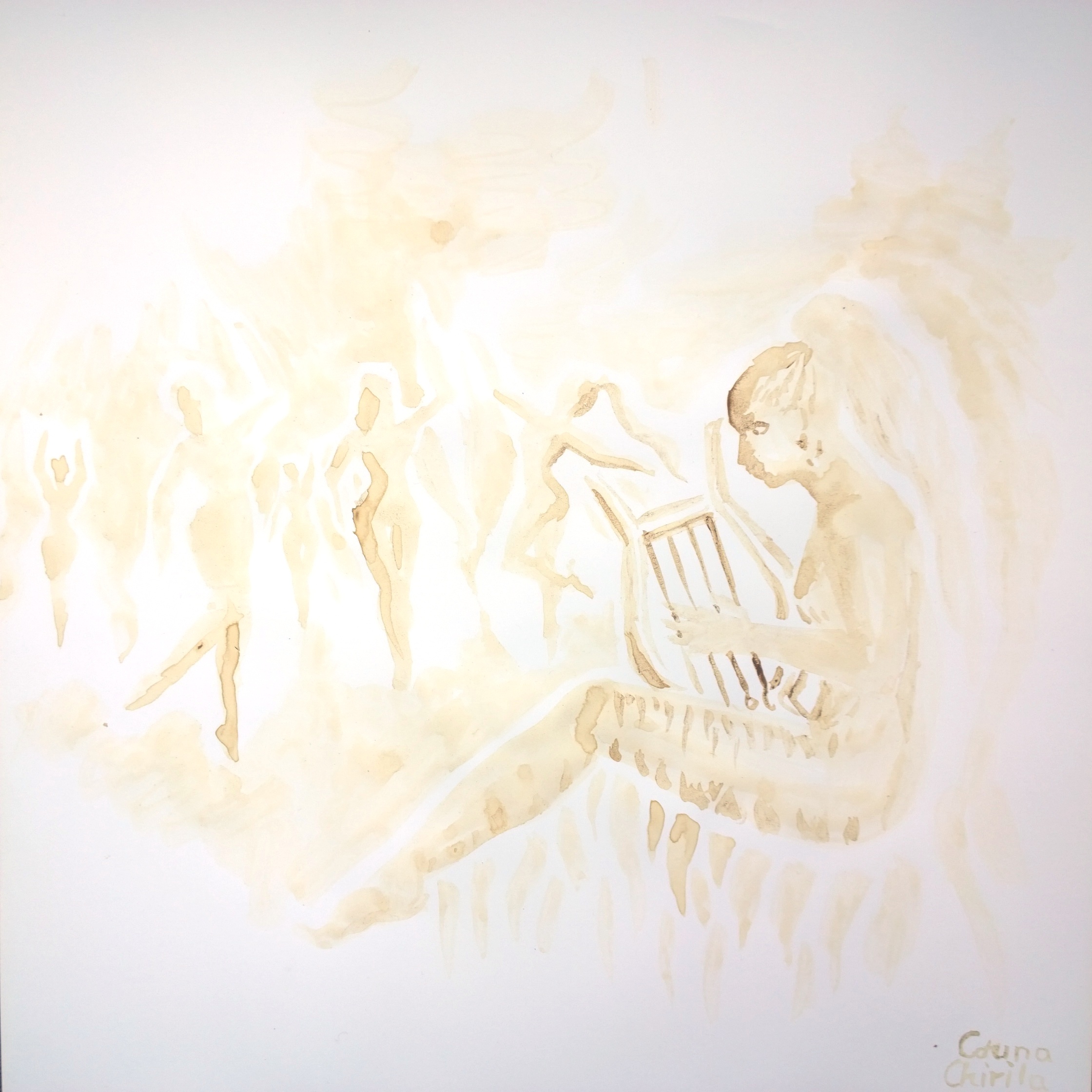 Muza Terpsichore pictura facuta cu cafea – Terpsichore coffee painting