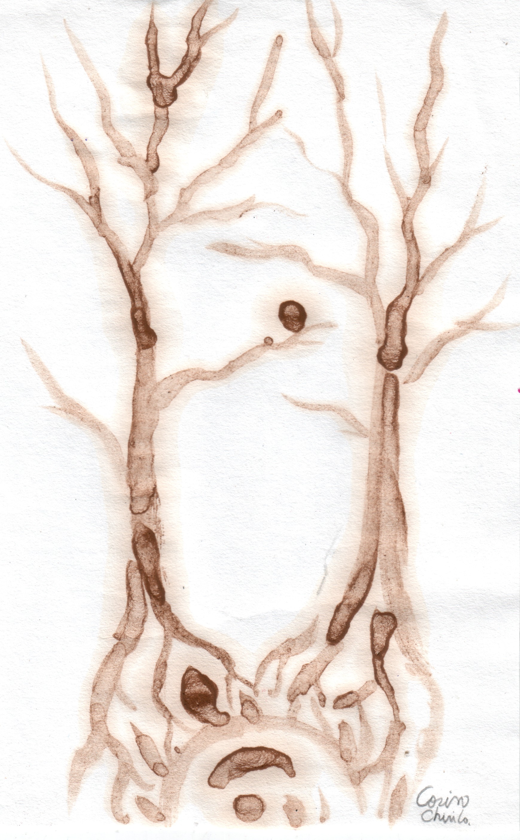 Ginko biloba trees coffee painting