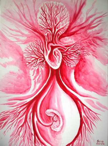 Motherhood and life heart and uterus painting