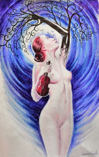 muza muzicii sau zeita cu vioara femeie nud desenata cu pixul.jpg