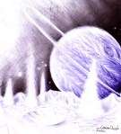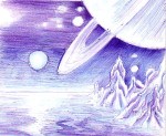 Peisaj spatal desenat cu pixul