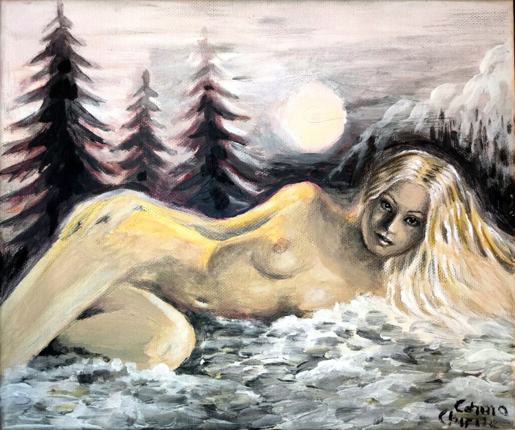 Citeşte mai multAzi mi-a fost dor sa desenez un nud si am pictat o nimfa a marilor pe sticla pornind de la o creatie mai veche