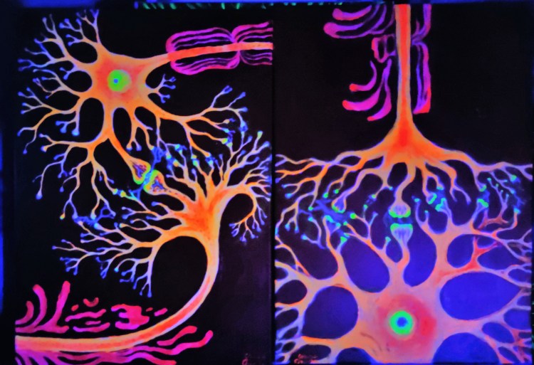Citeşte mai multAzi, 30 mai este ziua mondiala a sclerozei multiple si pentru a marca acest moment, folosind culori fluorescente, am realizat o mica serie de lucrari despre conexiunile care se stabilesc intre neuroni prin intermediul sinapselor si nu in ultimul rand despre scleroza multipla. Se spune despre scleroza multipla ca ar fi o boala autoimuna dar […]