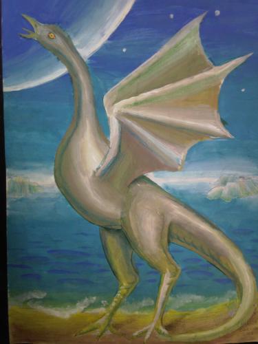 Un dinozaur zburator pregatindu-se sa-si ia zborul